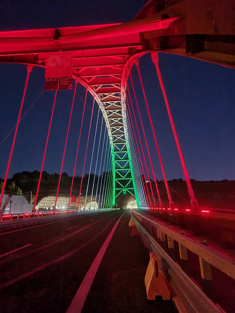 Its construction required a meticulous launching plan, which first involved the creation of a temporary reinforced concrete pier, followed by the use of: a hydraulic pushing system, a specially designed launching nose, 5 temporary towers positioned on the tie beam level, and finally, the deployment of several cranes, including a 500-ton lattice crane, which made the entire operation both spectacular and challenging.