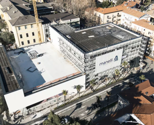 L’ampliamento del Liceo Maffei di Riva del Garda è stato reso urgente dall’accentuata carenza di spazi e dai conseguenti disagi logistici e organizzativi dovuti alla distribuzione degli studenti su due diverse sedi. Quest’opera, di grande importanza per il territorio in quanto serve diverse valli del Trentino, prevede una costruzione che utilizza calcestruzzo armato per i piani interrati e una struttura in travi lamellari e soletta in legno XLAM per la palestra, con tamponature verticali in laterizio. Il prospetto esterno è caratterizzato da una facciata ventilata con pannelli in fibrocemento e pietra sinterizzata. La palestra non sarà solo destinata all’educazione fisica degli studenti, ma è stata progettata per essere a norma e ospitare anche eventi esterni sportivi e di altro tipo, con la sua copertura caratterizzata da 12 travi in legno lamellare a campata unica di 25 metri lineari.