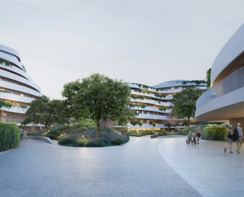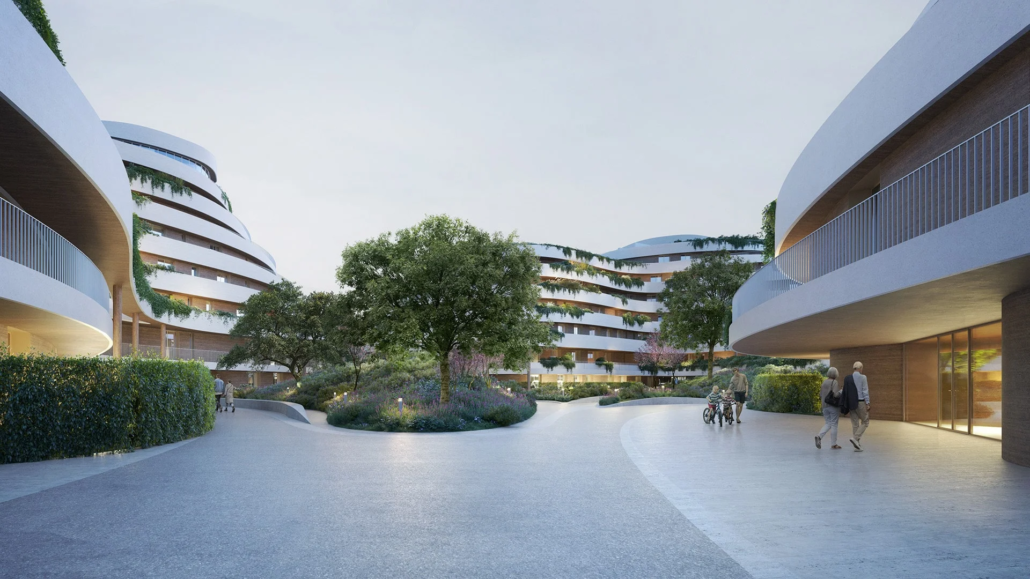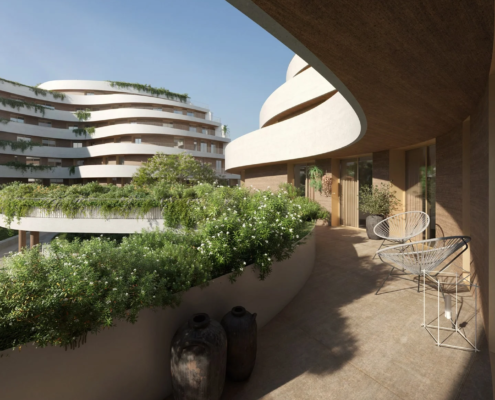 MyCityBari è un progetto innovativo di rigenerazione urbana a Bari, focalizzato sulla natura e la socializzazione per migliorare il benessere dei residenti. Il complesso di appartamenti sorgerà sull’area dell’ex clinica Santa Lucia, dopo una fase di demolizione e successiva nuova costruzione. La facciata esterna ventilata è caratterizzata da uno stile razionale, ottenuto tramite un rivestimento ceramico tridimensionale che, con le sue modanature e i motivi geometrici, richiama l’architettura del centro storico barese. In netto contrasto, la corte interna si definisce attraverso ampie terrazze dalle forme organiche e appartamenti rifiniti con un cappotto intonacato dai colori tenui. Questa particolare configurazione interna, sviluppandosi attraverso curve di livello, crea una corte di forma organica destinata a ospitare il cuore verde e sociale del complesso.